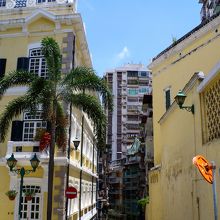 その名の如く、丘の頂にある広場です、観光客も少なくゆったりとした雰囲気でした。カフェスタンドのようなものもあり、ベンチもたくさんありました。淡い黄色の建物と淡いグリーン、さらに鮮やかなイエローオレンジの建物が周りにあります。