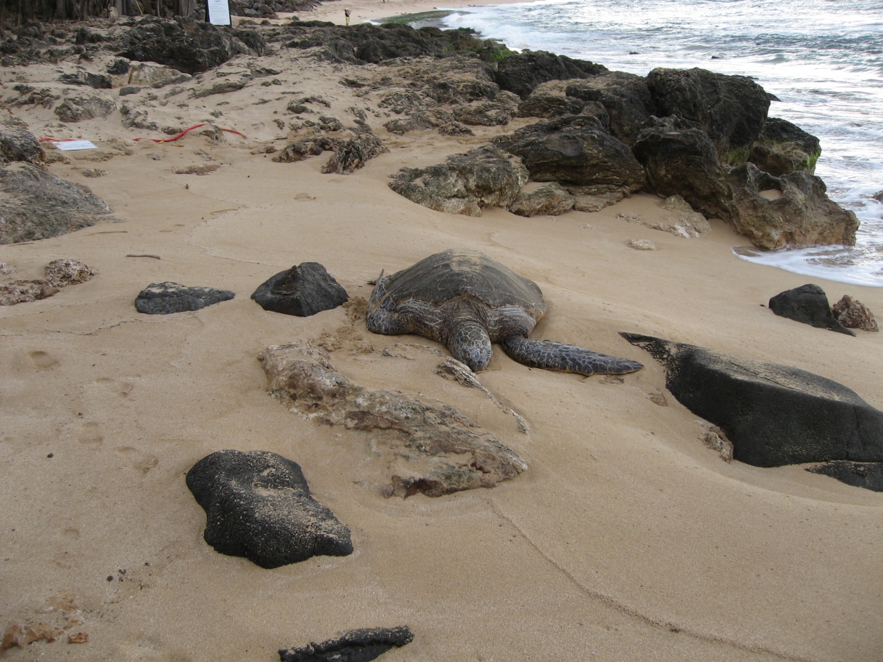 一匹しかいませんでしたが、すごい人だかりでした。のんびりした動きは、見てるだけでなぜか癒されます。テープで囲いがしてあり、近づくことはできませんが・・・。ハワイに来て、車があれば絶対行きたい場所ですね。ノースショア観光には欠かせません。
