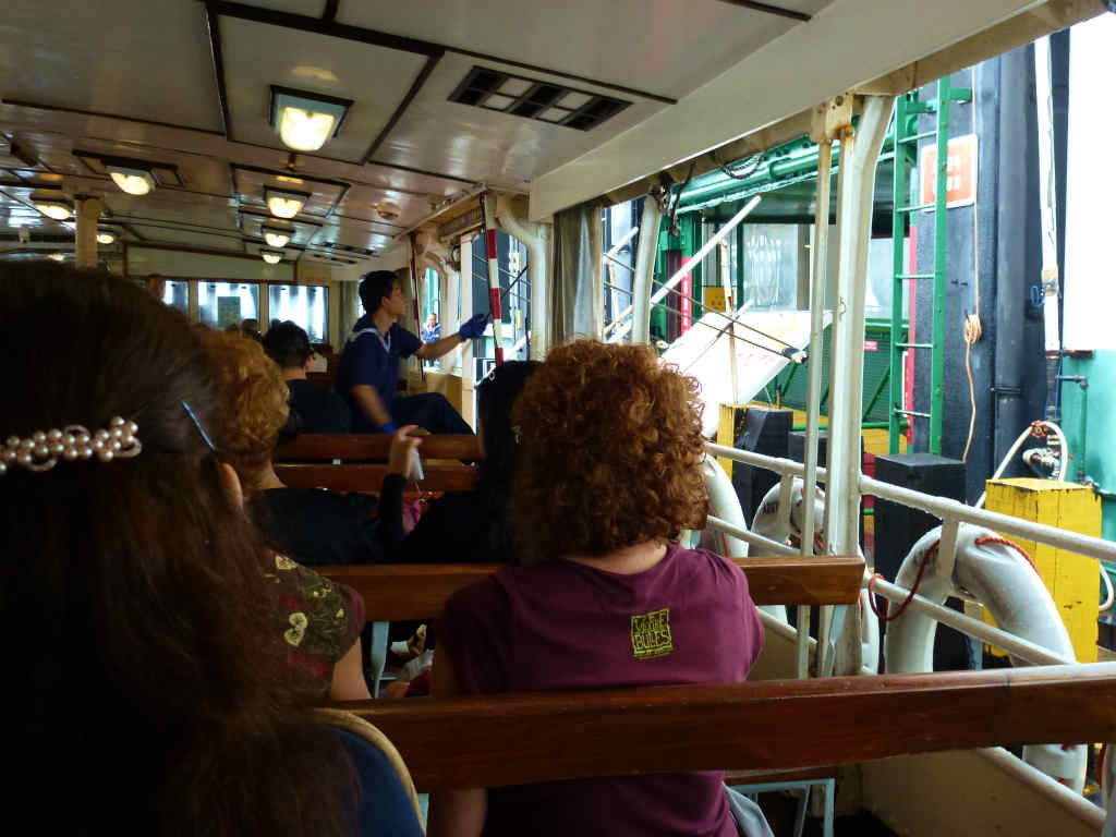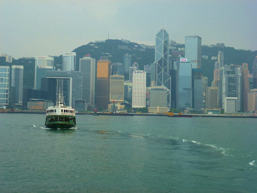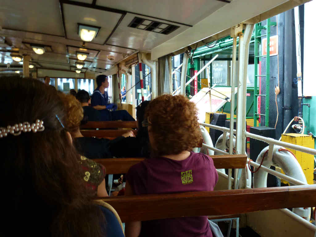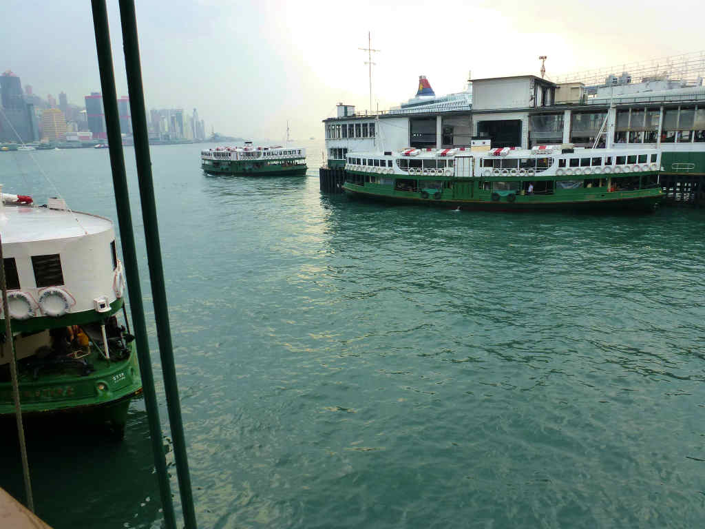 地下鉄が出来、香港島とカオルンを行き来するのにかなり楽になったとはいえ、地上の風景を楽しむならやはりスターフェリーは外せないでしょう。とはいえ、雨の中ではちともったいない乗船ではあるのですが。その場合は船の中を楽しむのが良しです。船着き場から離れる時の桟橋の上げるところや、イスのデザインがお☆さま、ああスターだからか、と納得してみたり。船の方向によってイスの背もたれが前後に変えられるとか。そんなところを楽しんでいるうちにいつの間にか対岸に着いてしまいます。