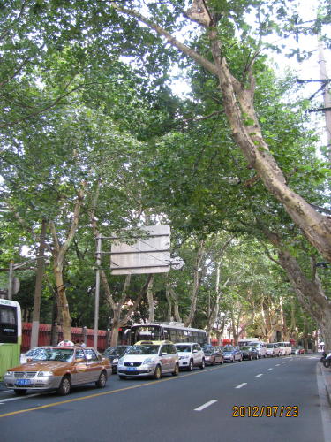 上海ではプラタナスの事をフランス青桐と言うそうです。フランス租界を中心に市内各所に見られます。これはフランス租界が出来た頃に植えられたのでは無いでしょうか?上海市では「並木トンネル20選」を初認定したそうです。ただ美しいだけでなく