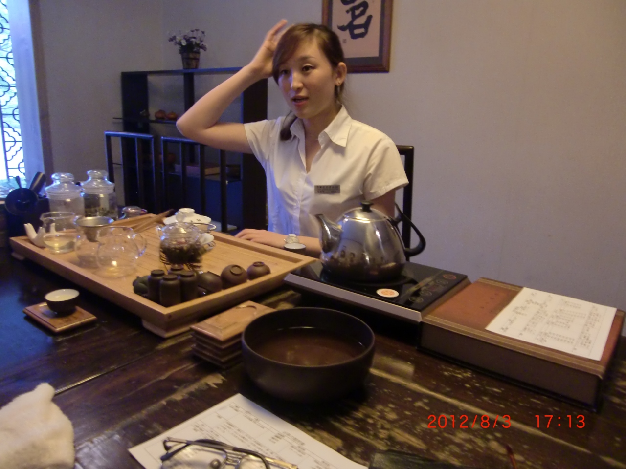 一葉茶、緑茶(龍井茶)プーアール茶、烏龍茶 花茶の説明を、受けました。