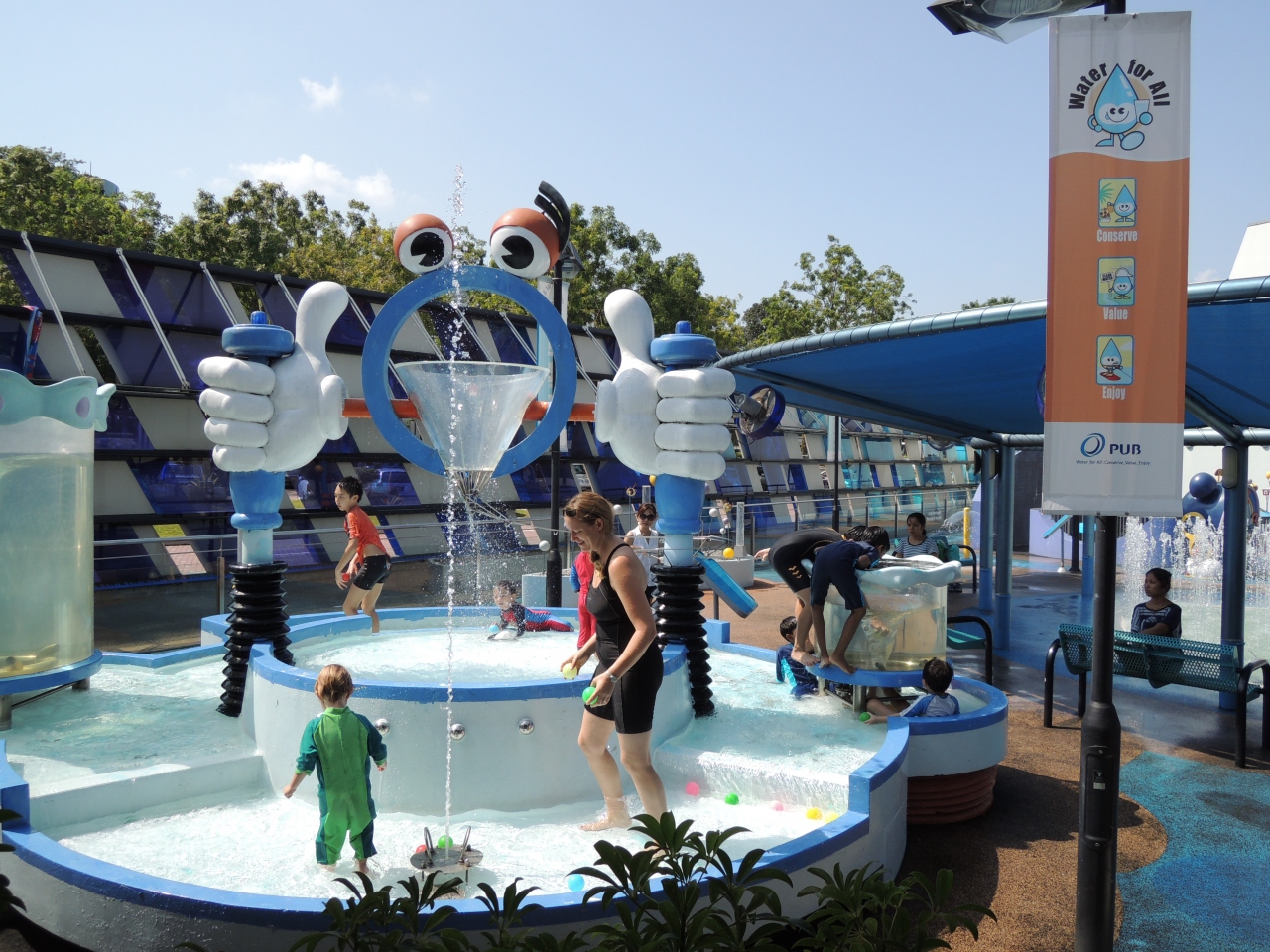 前回、雨で遊べなかったサイエンス・センターでの念願の水遊び。