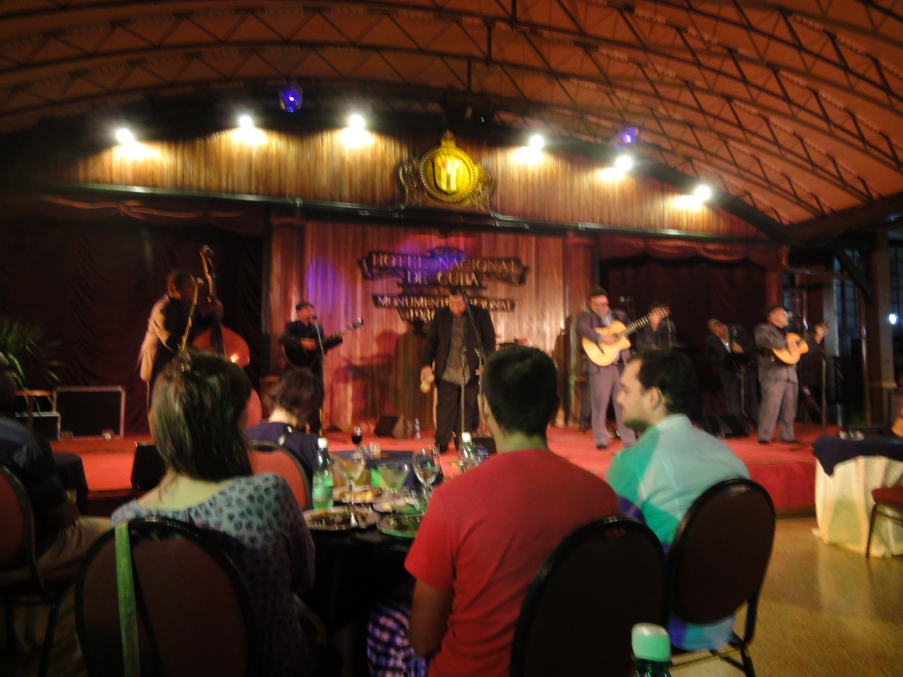 ホテルナシオナルの中にあります。ホテル正面入り口から入りまっすぐに進んで一旦裏庭方向に出てすぐに右へ進みます。PM9:00スタートの案内であったが実際にはPM8:30頃から前座ショー、PM8:45頃からショースタート。食事付きで早く並んだの人が舞台に向かって前の方に案内される。PM8:30前に到着したが既に10人くらいが並んでいる。かってブエナ・ビスタ・ソシアル・クラブで活躍した人の関係者が出演するショーで南米人が多く踊り出す人も多く陽気なショーでした。帰りはホテル前にタクシーも多い。