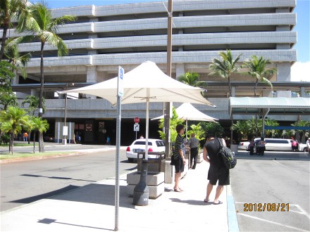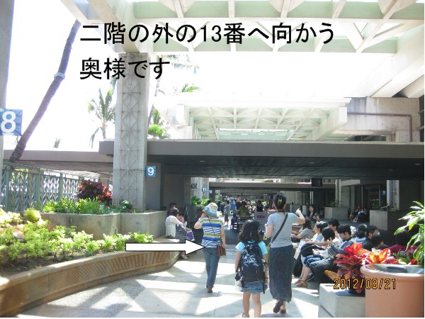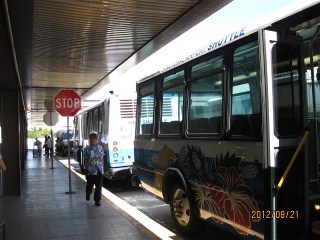 今回は大型トランク一個とロッドケース(135cm)とお土産の段ボール箱(60×50×45)重いのよね。今度は団体出口へ。あーーーようやく外に出れた。感動ですね。なんだかんだで一時間以上も建物の中にいたのですから。やつと ハワイに来た気がしました。あとはトラベルのカウンターへ行き、バスに乗りホテルへの予定がトラブル発生しました。呼びこまれたカウンターで、貴方の名前がありません?。え え え そんな馬鹿な。調べてくださいよ。幸いにも日本語が通じたので良かったが。上に 行け。上でバスを待て。何と重い荷物を引き連れてよいしよ よいしよ と階段登るのだ。13番は100m先。息が切れる。妻は先にすたすたと 13番に。俺はポーターか。一休みする間もなく トラベルの社員が私を呼ぶ。下に戻ってください。何だ 何だ。いまようやく着いたのに。今度は下だ。階段が辛い、妻は一人ですたすたと降りる。あーーーーポーターは辛いのた゛。別のカウンターへ連れて行かれたのです。話が違うよね。最初からここへ呼んでくれればよかったのに。でも 何とかホテルへ運んでもらい一安心でした。ま トラブルはよくあることですからね。ホテルのロビーで娘が待っていてくれたので疲れも飛びました。娘の力は凄いのだ。強くハグ。ダブルハグ。何度も何度もハグ。ありがとう娘よ。