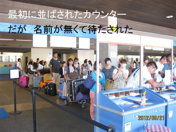 8月20日に成田からホノルルへ向かうのですが、ちよいと成田のDELTAのゲートでトラブルが発生したのです。23番ゲートとチケットにあったのですが一応確認の為に空港内のサービスカウンターでチケットを見せて23番を確認したのです。そして23番で待つことにしたのですが、飛行機に乗る前にビールを一杯飲みたく近くのレストランで美味しくいただいたのです。ここまでは良かったのですが搭乗時間が迫っているのに23番ゲートの部屋は真っ暗なんですよ。おかしいと思いインフォメーションカウンターへ行きDELTAのゲートが開かないがどうなっているのが調べてもらつたのです。そうしたら何とゲートが変更になっていたのです。21番なんですよ。あわてて妻と走りましたね。何ともう搭乗手続きが始まっていたのです。私は受付カウンターで手の空いているスタッフに 何故ゲートが変更になったのに放送しないのだ と 怒りましよ。そうしたら 顔面真っ青になり あわててマイクを持ち放送わ始めたのです。ぞくぞくとお客が奥から集ってきました。でも皆さん何も文句言わずにいるのにも驚いたものです。皆さんどう思いますか。危なく乗り遅れる所だったのですから。