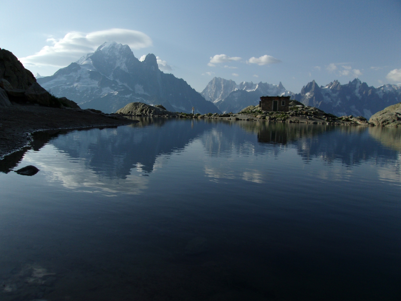 天気のいい日に湖に映るモンブラン山群と青空はまさに絶景です。ほとりにはLacBlanc小屋があり宿泊できますが、人気なので予約しないと泊まれません。宿泊すれば、夕日と朝日を楽しめるのは当然ですが、シュタインボック(角の大きな鹿)を見れることもあります。