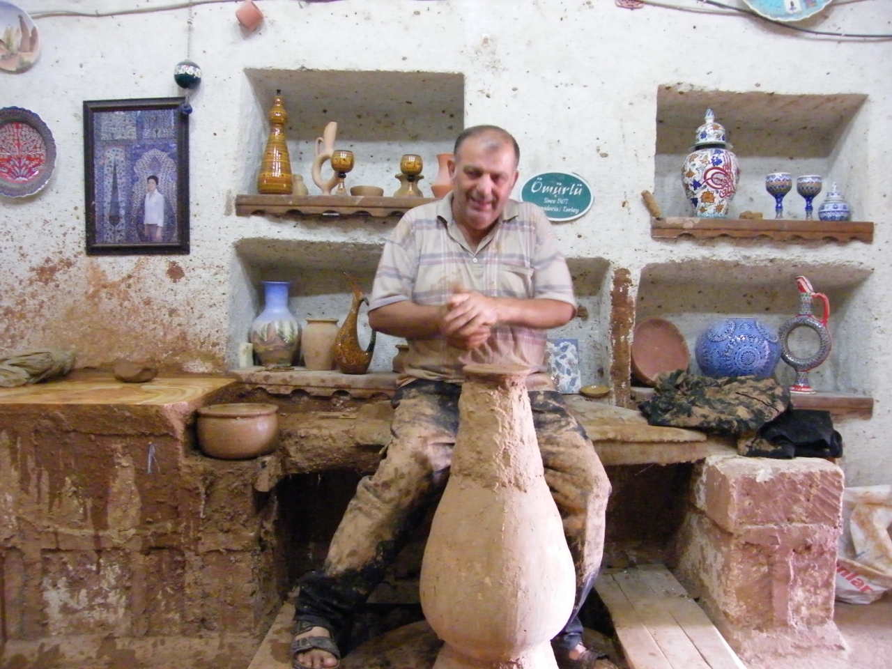 トルコ最長のクズル川が村の中心を流れここから取れる赤土と粘土で昔からの陶芸の村である。陶芸工房も見学出きる。ろくろを足で回して形を作り違う作業台では細かい絵付けをしていた。併設の店では 小さくて持ち帰り安い品物もたくさんおいてありました。