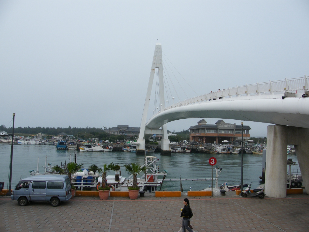 台北駅からMRT淡水線の終点淡水駅までで35分。そこから淡水老街を通りリバーサイドの道路へ。港の方へ歩いていくと遊歩道や大きな橋がある。そこは台湾国内からの観光客が多いらしく 家族連れも遊びに来ていた。夕景は美しいらしい。