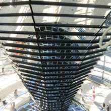 中央部のたくさんの鏡はドーム下にある議場に光を集めるためだそうです。
