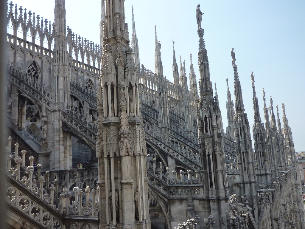 ミラノに行ったら必見の大教会です。広場から見ているだけでも立派ですが、屋根に上ってみてその大きさに驚きました。