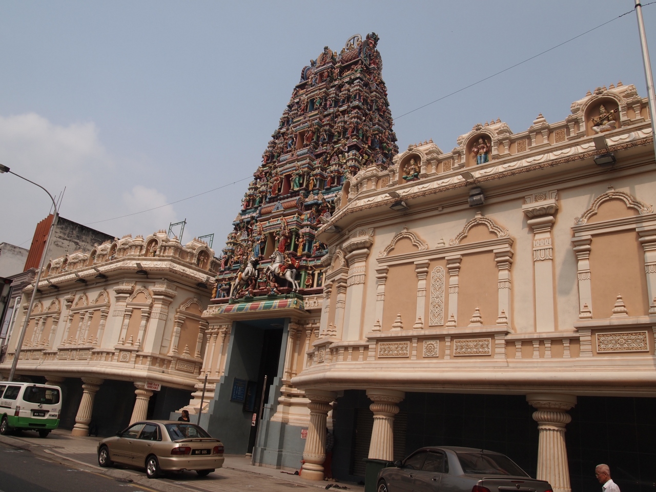 中国人街にあります。ふらふらと観光していてもちゃんとわかりますよ。現地の人が多くお祈りをしていまいた。とてもカラフルな外観で一度は訪れたほうが良いと思います。中にも入れるみたいだけど、外観だけ楽しみました。