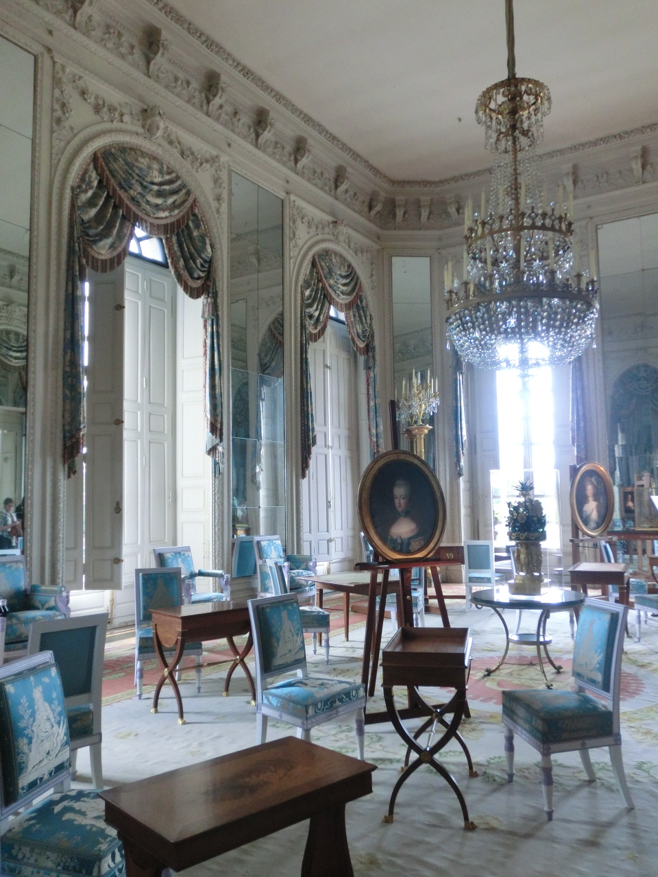 プチ・トリアノンを見学後、歩いてグラン・トリアノンへ。ベルサイユに君臨した女性達がテーマの企画展をやっていて、マリー・アントワネットやルイ16世の妹の肖像画も飾ってありました。建物自体は、広めの廊下もありますが、床が板張りで天井画がなく、ベルサイユ宮殿の鏡の間と比べてしまうと、地味目。むしろプチ・トリアノンの方が小さいながらも可愛らしくて印象に残りました。帰りのプチ・トランを待つ間に、外のスタンドの生絞りオレンジジュースを飲みました。その場で何個かのオレンジを絞ってくれて、美味しかったです。