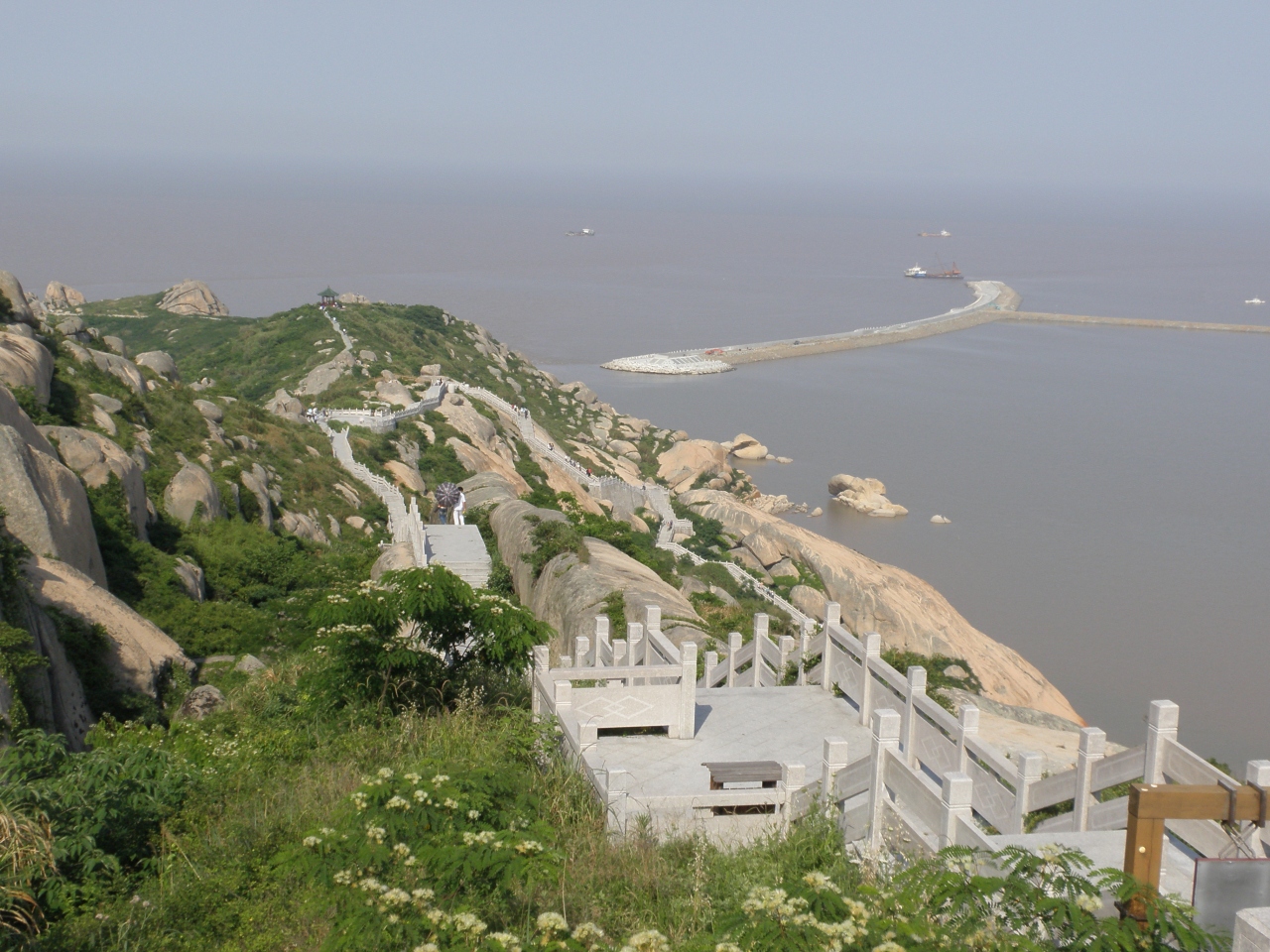 海上にかかる東海大橋の終点にある島です。バス停近くに、レストランとコンビニがある程度の小さな観光地です。小高い丘に登って行くと、洋山港や、海上大橋、東シナ海が一望に見渡せます。上海からはバスを乗り継ぎ2時間以上かかりますが、景色は抜群です。