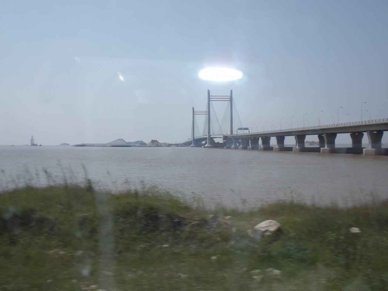 上海から路線バスを乗り継いで2時間かかります。20KM以上もある、海上にかかった大橋です。片側4車線あり、沖合の洋山港で荷あげされた貨物を、中国本土に運搬するための大動脈です。さすがは中国、桁違いにスケールが大きいです。