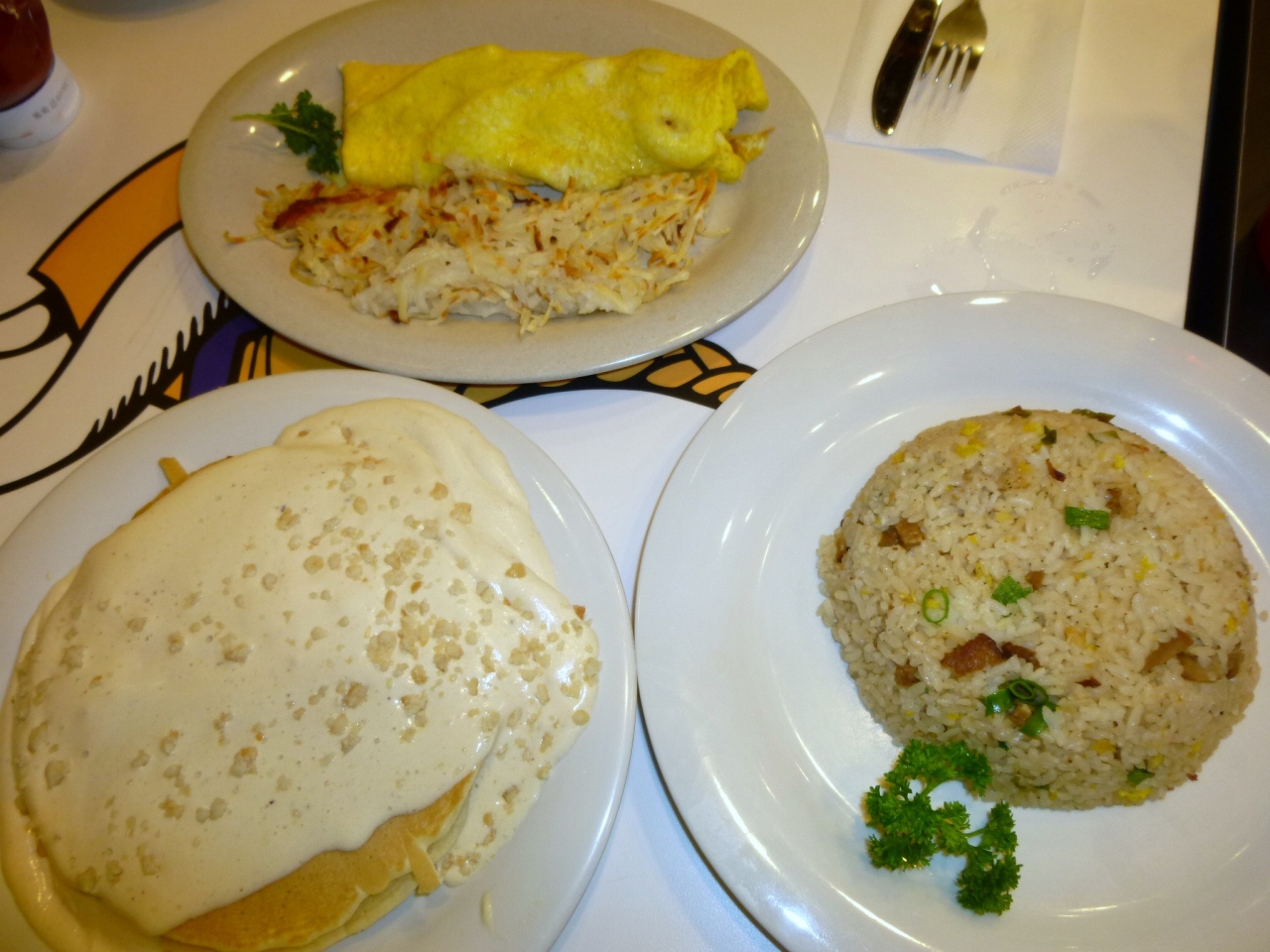 定番のマカナッツパンケーキにオムレツ、チャーハンをオーダー。