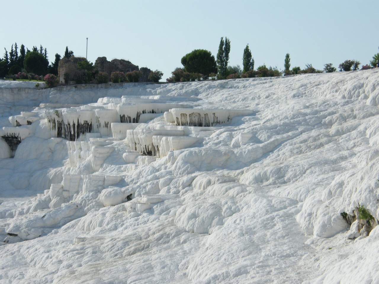 街に降りて、下から見上げる石灰棚は、非常にフォトジェニックです。