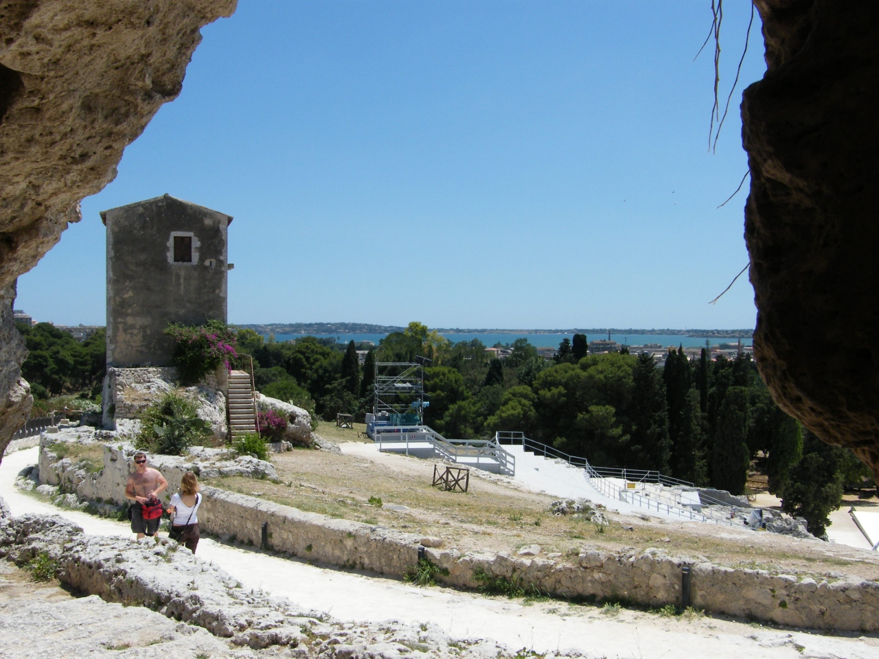 下を見下ろすと深い谷に石切り場が。17世紀に起きた地震によって、天井が崩れて岩の天蓋ができ、これを見たナポリの画家が<天国の石切り場>と名づけたらしいです。元はギリシア時代の神殿を立てるための採石場だったそうです。ギリシア時代なんて、歴史を感じます。