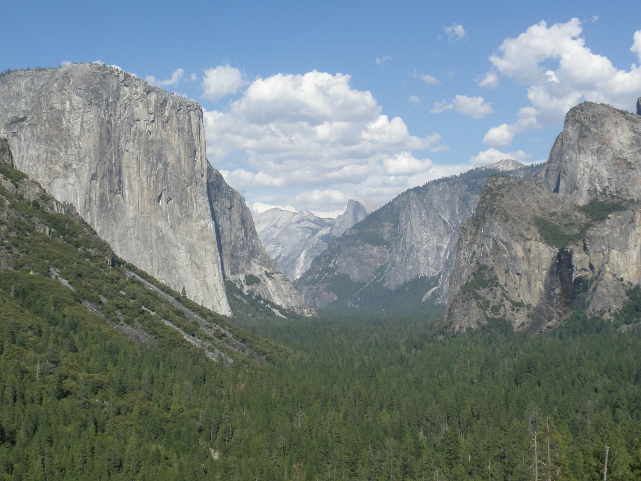 8月にサンフランシスコから日帰りで行きました。ダウンタウンからは3~4時間のドライブです。朝夕はコートがいる位寒いサンフランシスコでしたが、ヨセミテに入ると30度近い真夏の天気でした。最初にヨセミテバレービジターセンターで情報をもらい見どころを回りました。残念なことにブライダルベール滝は水が枯れていました。6月位までなら豊富な水量を落下させる豪快な滝が見られるようですが、夏場は期待できません。ただトンネルビューは息を飲む美しさでした。できれば1泊して、大自然を満喫したかったです。もし日帰りで行く場合はとにかく早く出発して見どころを回りましょう。