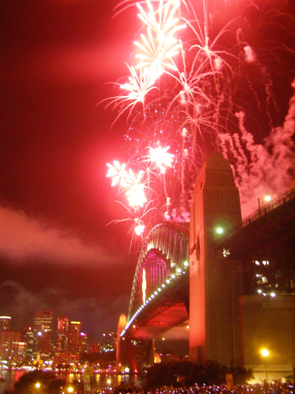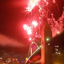 誰もが知るハーバーブリッジ、普通に見るだけでも感動ものなのに、毎年1月1日は花火も見れちゃいます!!シドニー滞在時に、運よくも近場で場所を確保して観ることができました。シドニーのアイコン的存在のハーバーブリッジでカウントダウンの花火です。