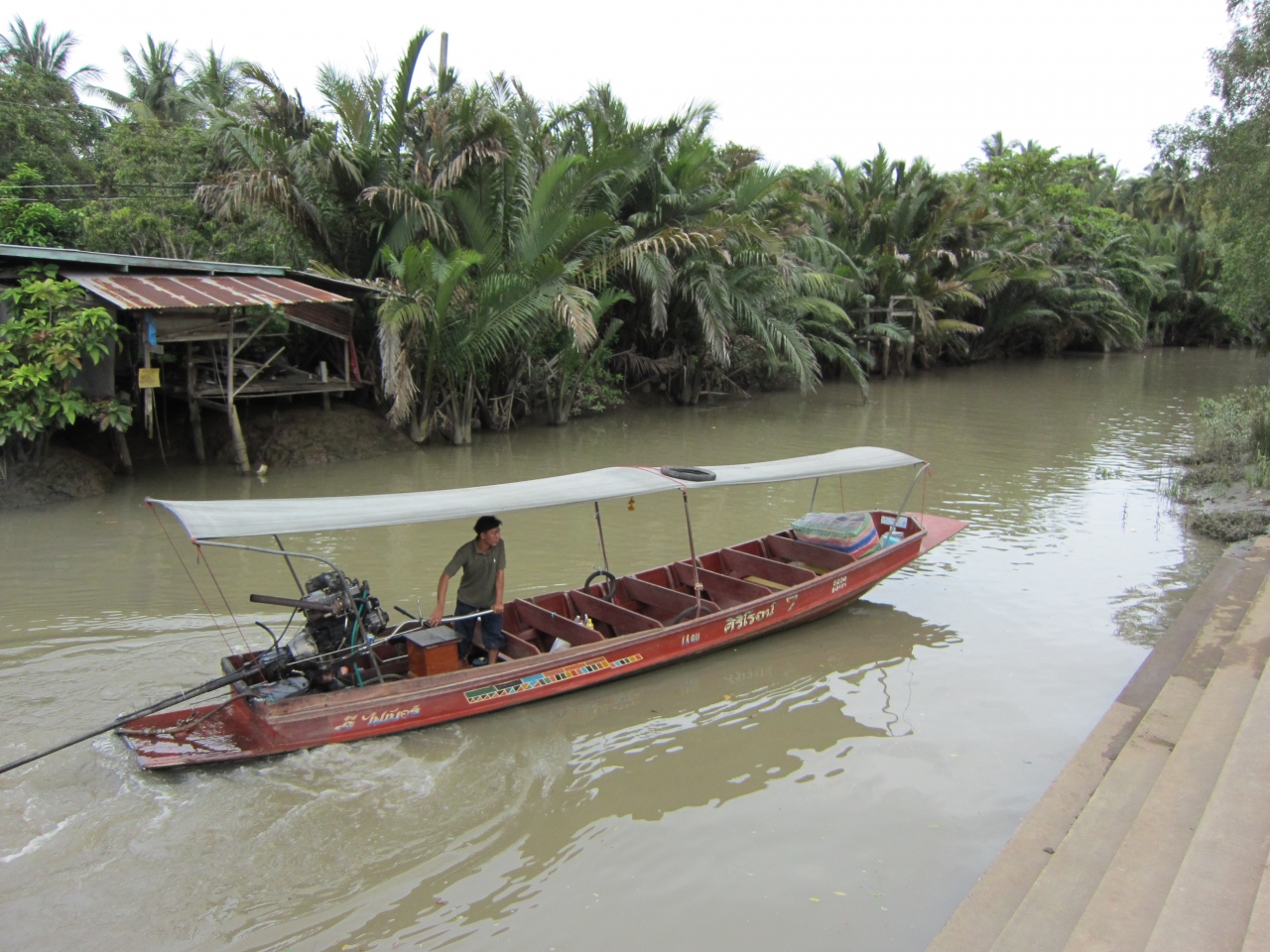 午後1時30府にころ到着しましたが、とても混んでいました。夜の蛍鑑賞船が有名ですが、昼間のボートツアーもお勧めです。周辺の寺院にいくつが上陸して3時間で50バーツでした。