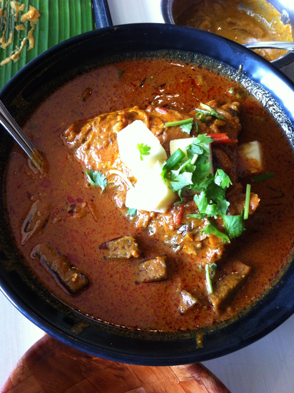 フィッシュカレーはスモールサイズを注文しましたがやはり結構大きくて、その他のカレーは頼む必要がなかったと後で気づきました。そして思ったよりも辛いです。他に頼んだカレーの倍位辛かったと思います。さらにどのカレーも結構味が濃いので、ナンなどが進みます。一緒に普通のペース食べていたらあっという間に満腹になってしまうでしょう。