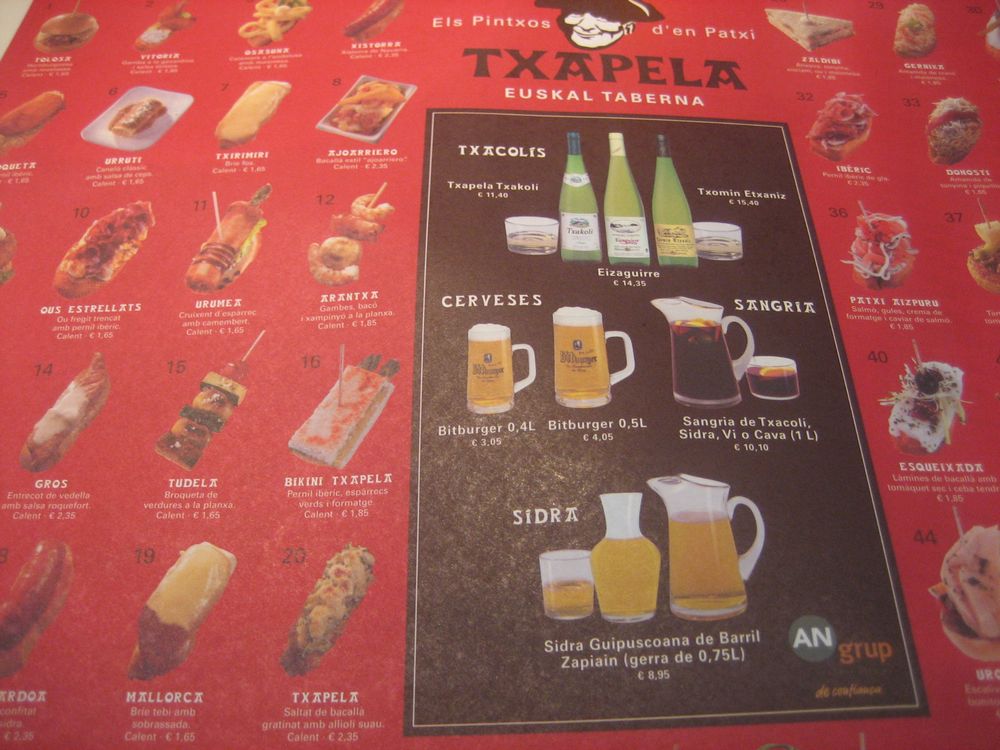 ピンチョスというつまみのような少量な料理ですのでいろいろと種類を