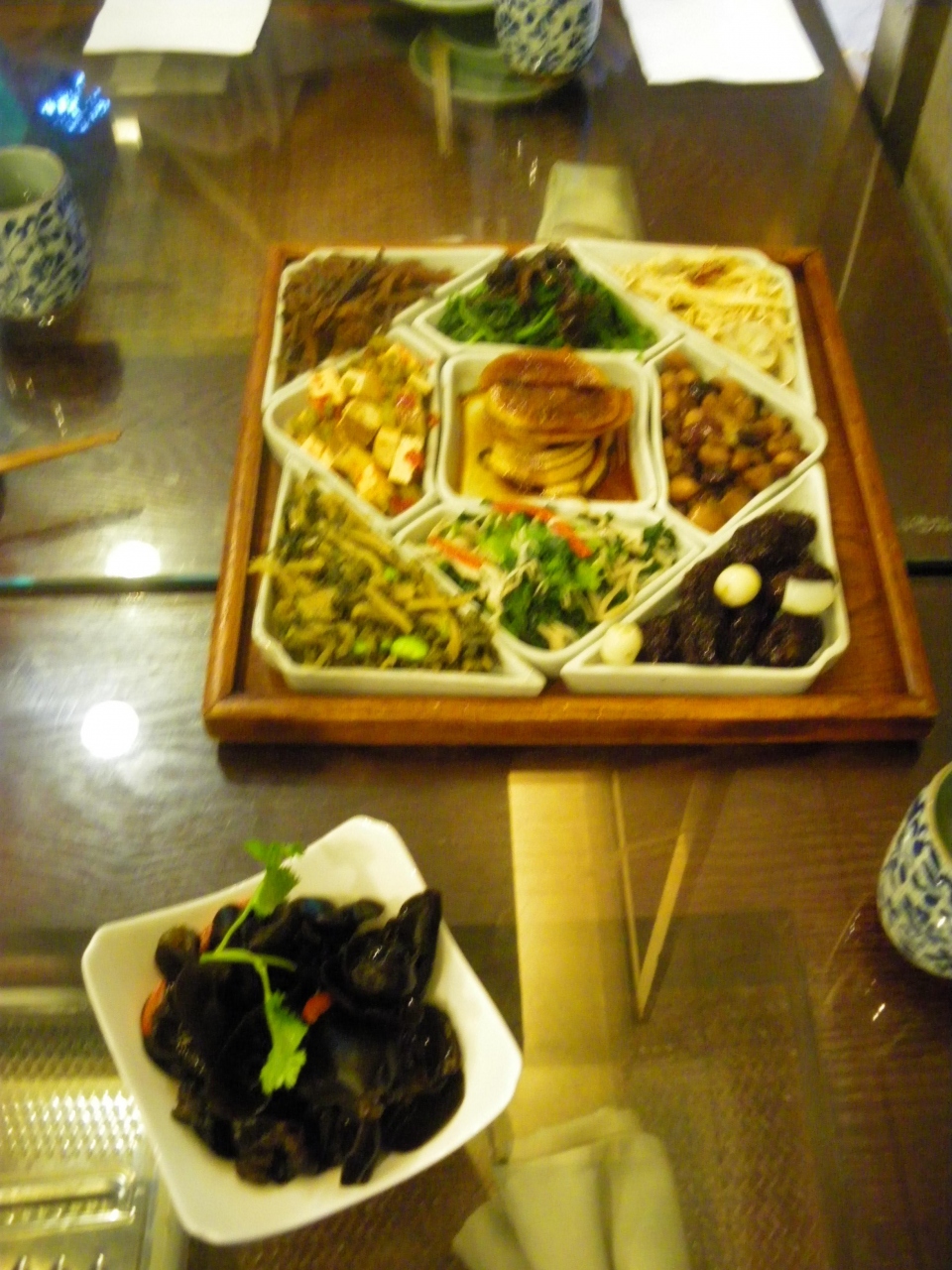 旅行記にも書きましたが、予約なしでいったら店は満席でした。来ているのは中国人ばかりでした。『予約してないの? しょうがないなあ。』とかいわれて隣のレストランに案内されました。店がいっぱいなので違う店を教えてくれたのかなと思っていたら、なんとそこで五観堂の料理を持ってきて食べさせてくれたのでした。