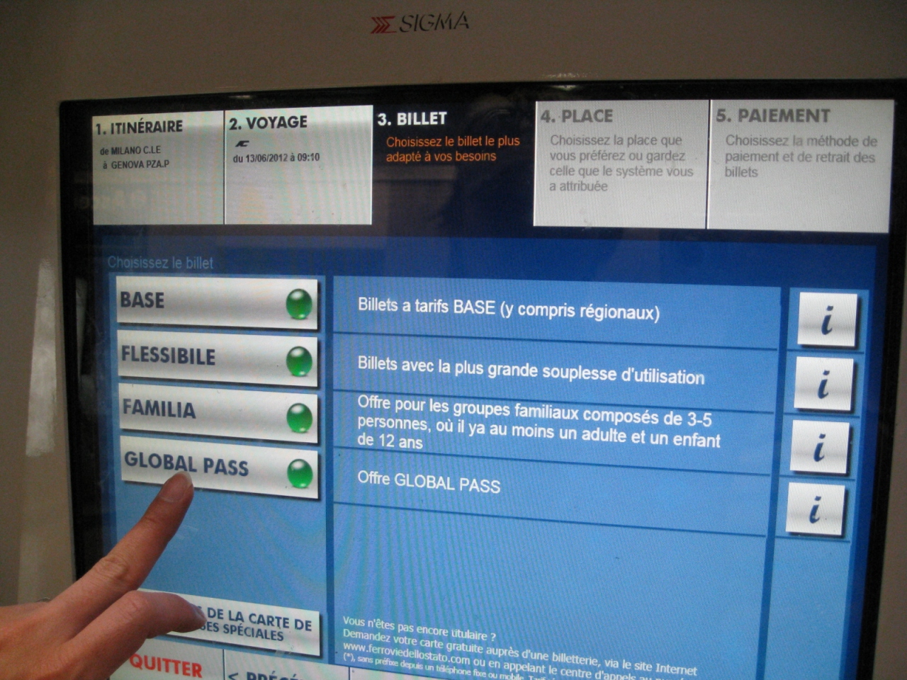 でも、イタリアでは自動券売機が優秀なので、パス保持者も自動券売機を使って予約券を買うことができます。