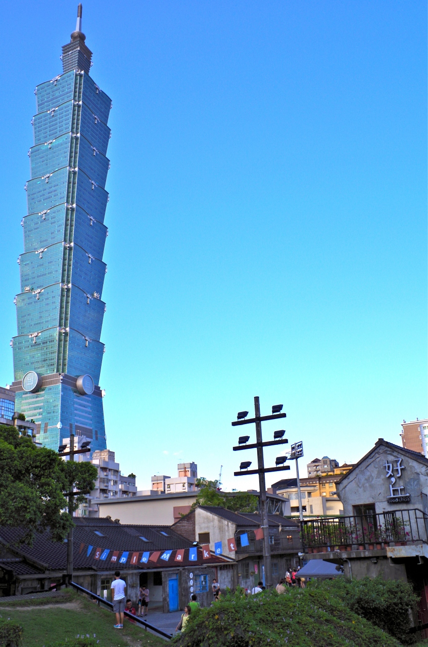 今は華やかな101の周りも昔は田舎で、軍事施設や軍人家族用の住宅があった。四四南村はそんな軍人村があったところ、今は信義公民會館の一部となっている。建物には、眷村の生活についての展示スペース、若手アーティストのギャラリー、ベーグル屋、アイスクリームや雑貨販売などのお店が入っている。屋外マーケットが開かれることもあり、いつ行っても賑わっている。