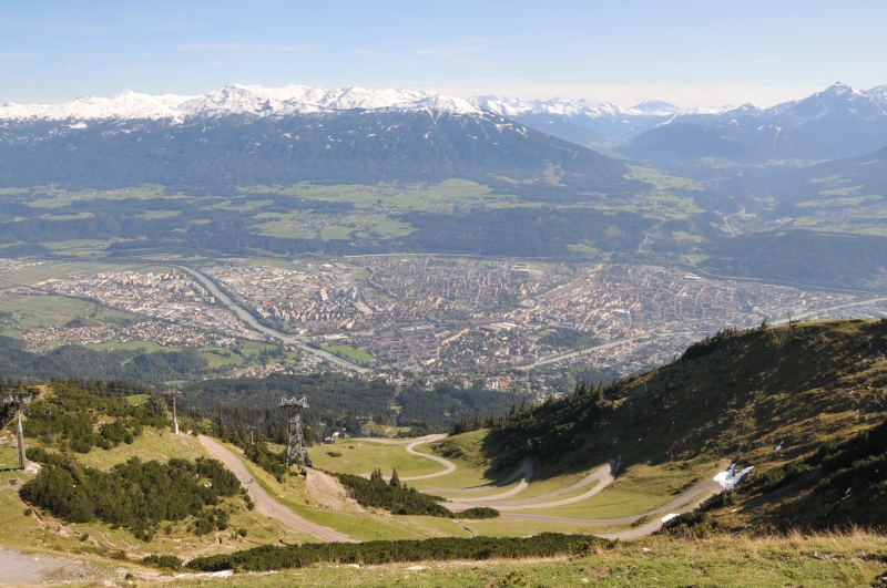 インスブルックの中心部から手軽にアクセスできて人気があるのがノルトケッテ山にあるハーフェレカー展望台です。宮廷教会の裏からケーブルカーに乗り、終点のフンガーブルクからロープウェーに乗り換えです。終点のゼークルーベからでも絶景が拝めますが、さらにもう一つ上に行くロープウェーに乗ってハーフェレカー展望台に行けばもっといい景色を見られます。