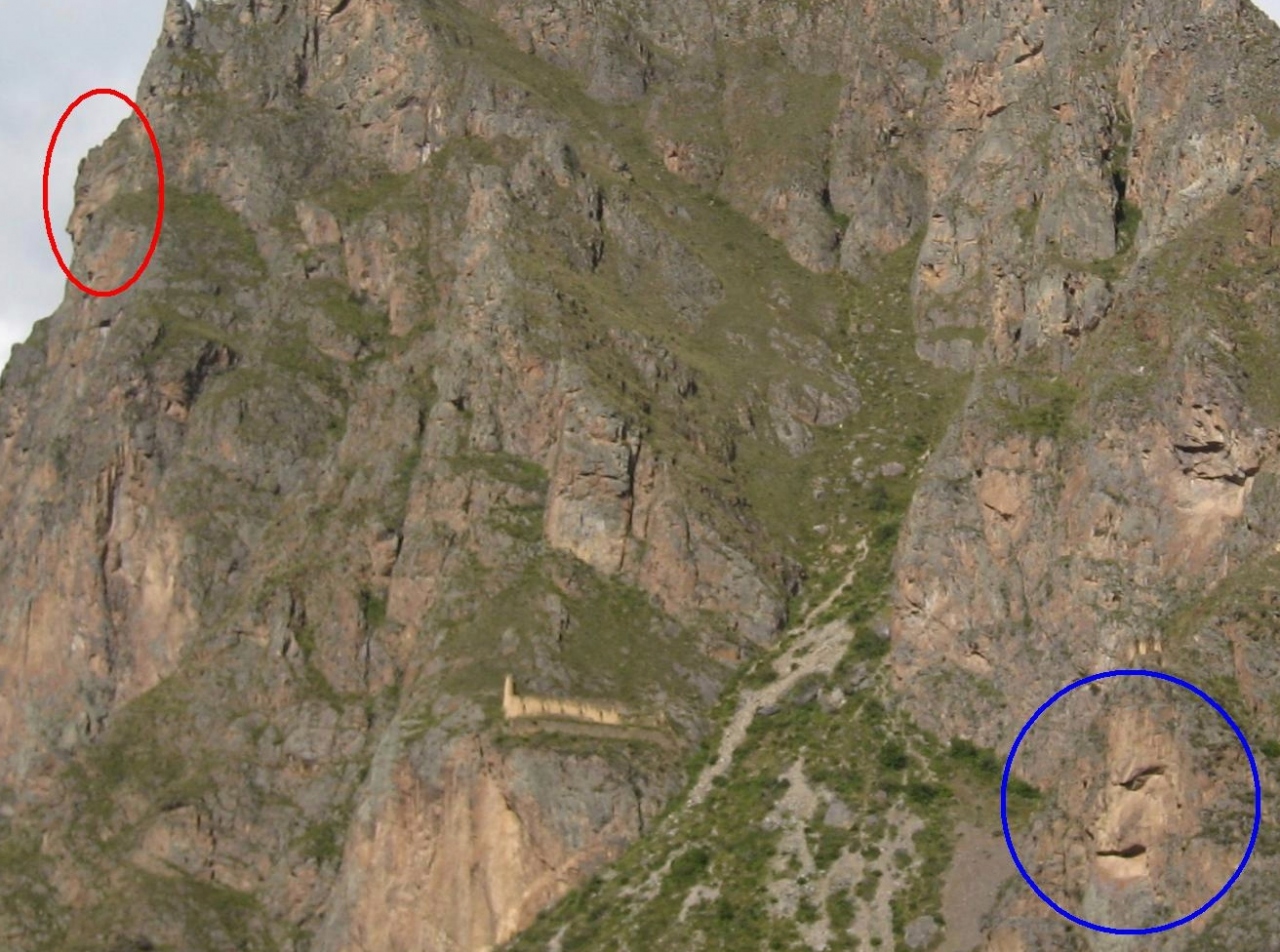 一つは、インカ時代の人々が人工的に山肌を削って作ったもの、もう一つは天然の造形です。人工物の顔には、1年間の特定の1日だけ鼻の頭を通る太陽光線が遺跡へと差し込む日があるそうです。ぜひ、この2つの顔を岩肌に探してみてください。