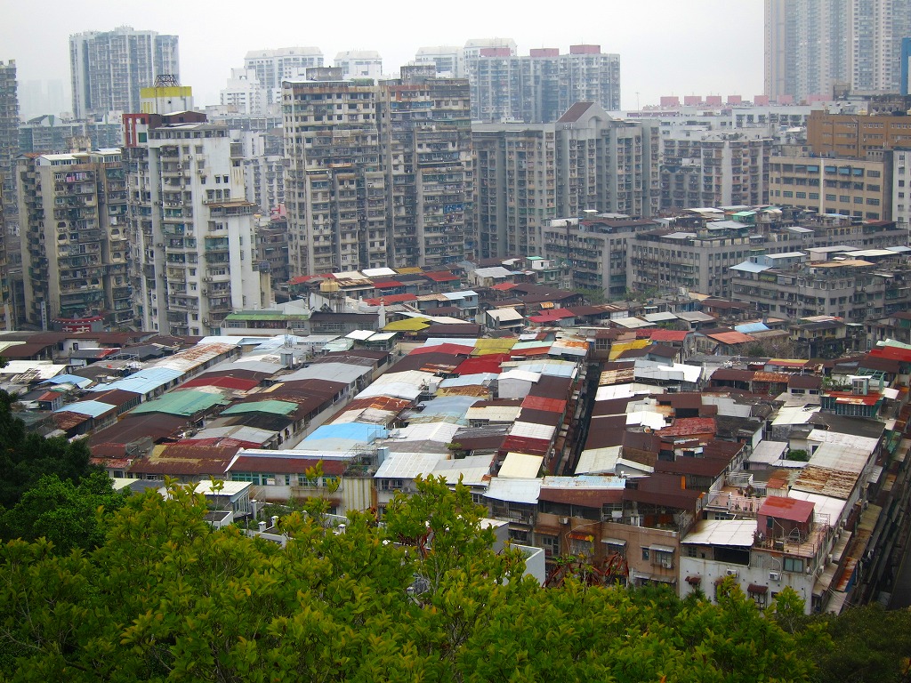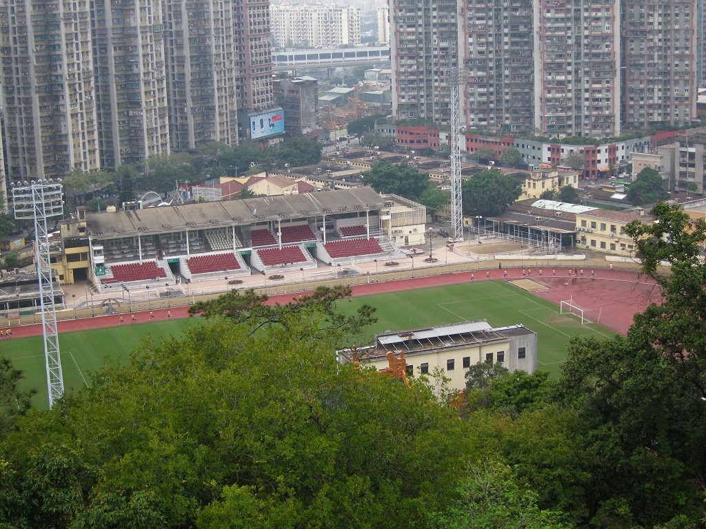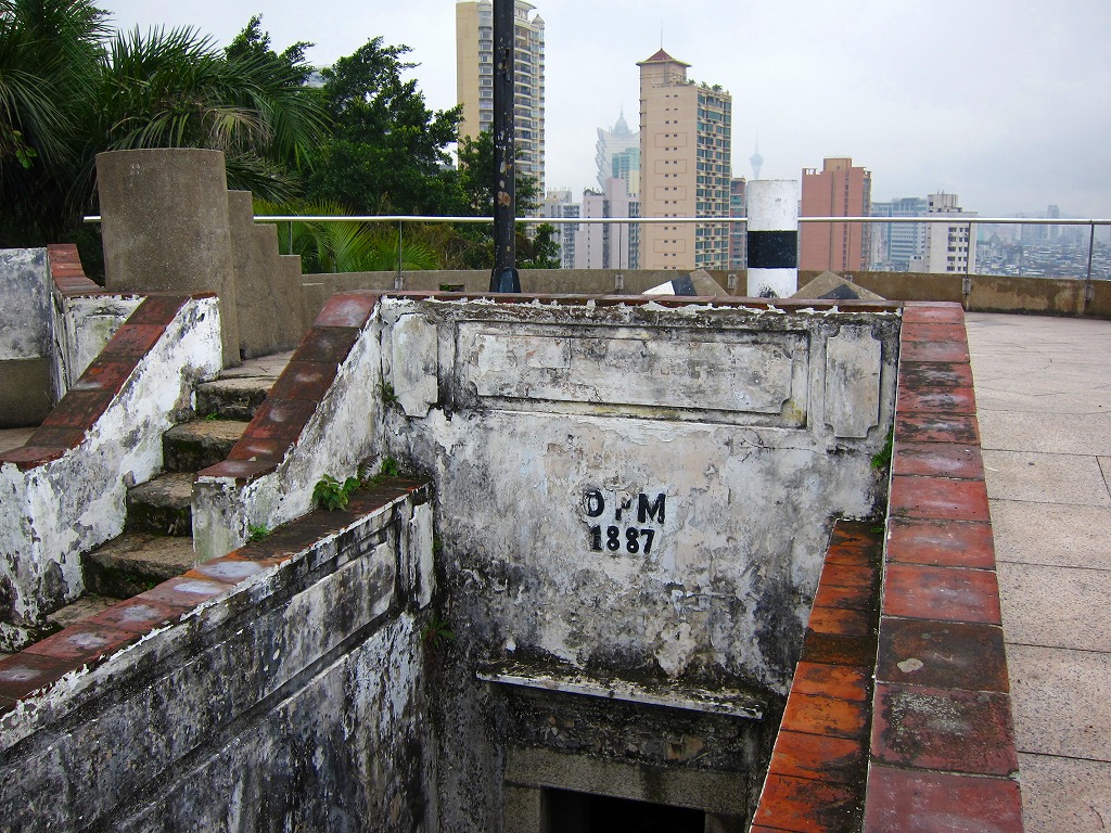 主な観光地からは少々外れているので本当に静かな公園然とした砲台跡です。登るには少々頑張らないといけませんが、頂上部分はモンテの丘と同じような砦になっており、見晴らしが良いです。シンボルのグランドリスボアも見えますしボーダーの建物も見える、足元にはドッグレース場も見えます。澳門も北の方は庶民の街になっていてびっしりとトタン屋根が広がっています。