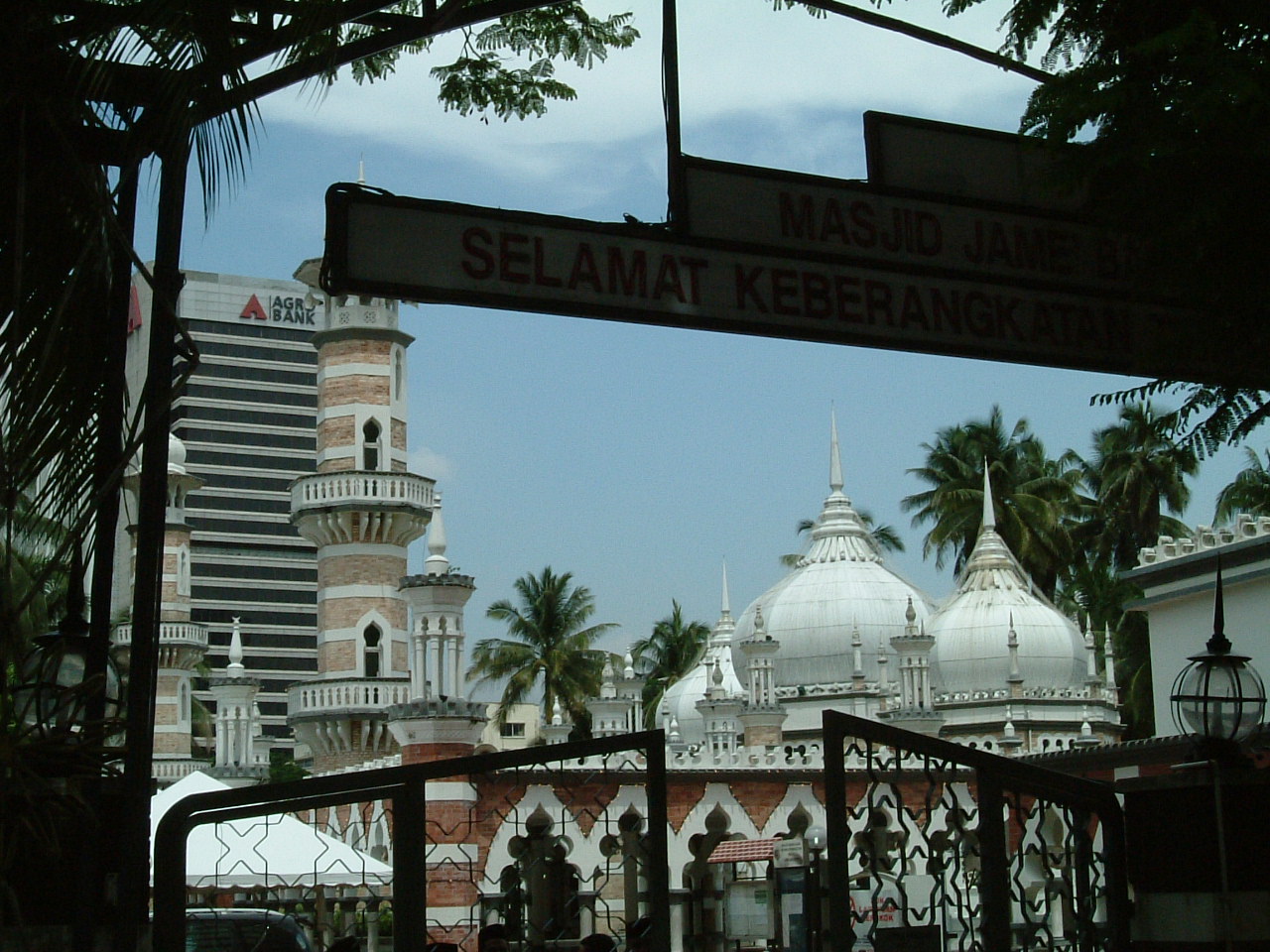 チャイナタウンからムルデカスクエアを経由し徒歩で行きました。クアラルンプールの中心地にあります。2つの川の合流点にあり旧モスクだけありとても立派です。半袖だったので衣服を借り見学しました。現地の信者が多く礼拝していました。