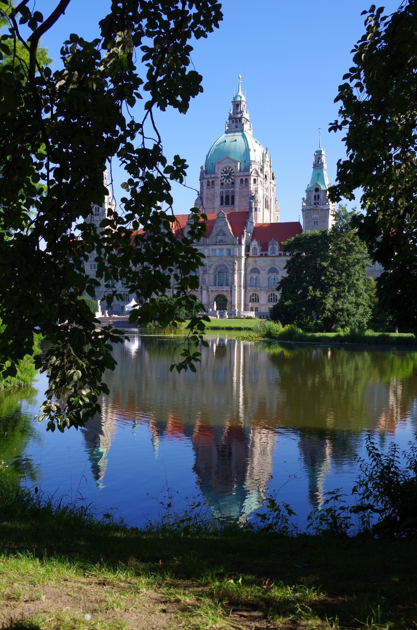 裏には小さな湖があり、湖に映る市庁舎も幻想的です。