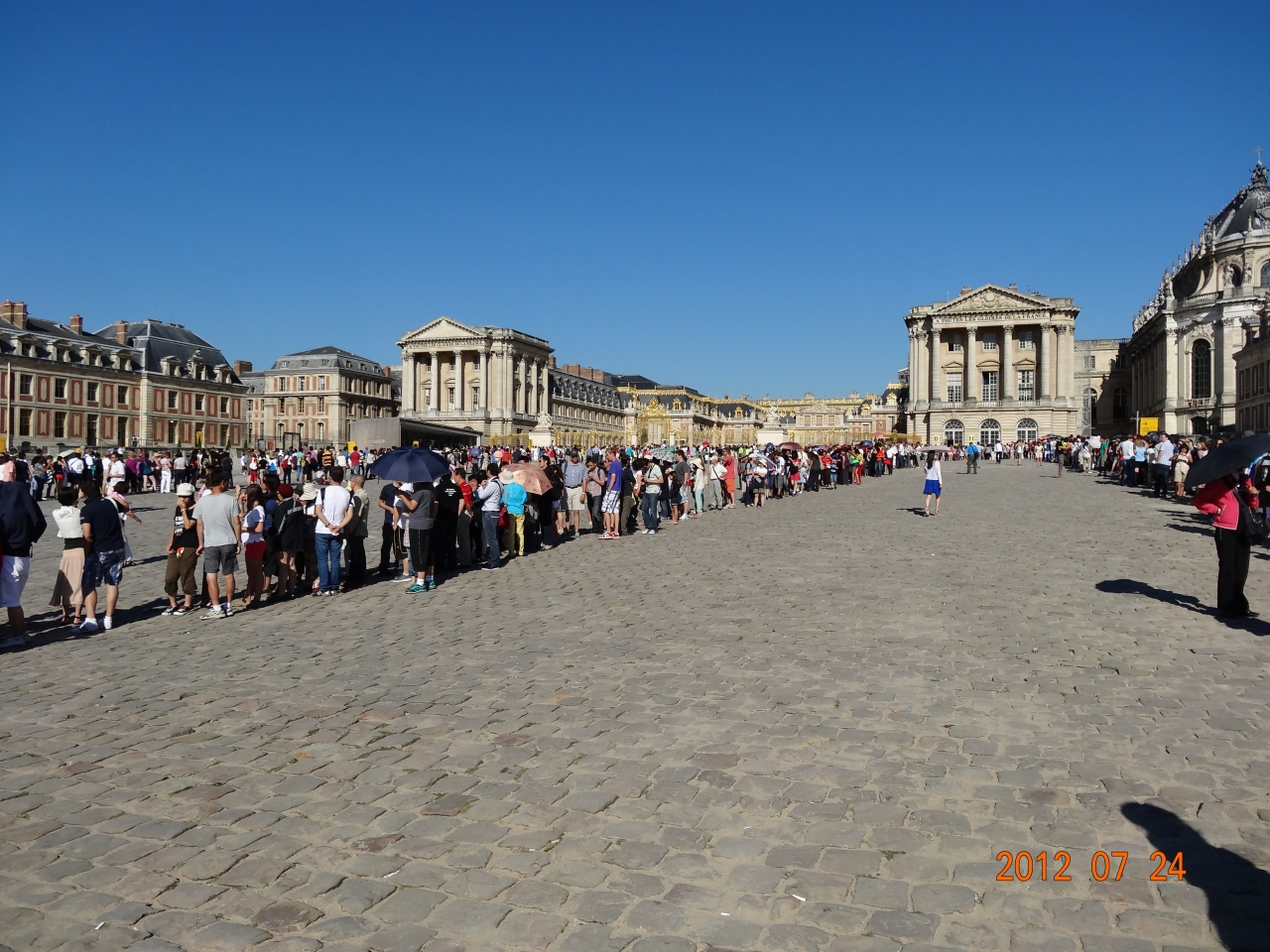 数年前より家族から、ベルサイユ宮殿に行きたいと言われていました(かの有名な「ベルサイユのバラ」の影響です)。パリ市内の凱旋門近くのホテルに宿泊し、電車で移動しました。地下鉄の「Charies de Gaulle Etoile」駅(シャルルドゴールエトワール)から地下鉄6番に乗り、その後、Bir Hakeim(ビルアケム)駅で地下鉄6番を降り、この駅で接続しているRER(高速郊外鉄道)のChamp de Mars Tour Eiffel駅(エッフェル塔の近く)まで歩き、ベルサイユ宮殿に行きました。RERの乗車時間は約30分です。