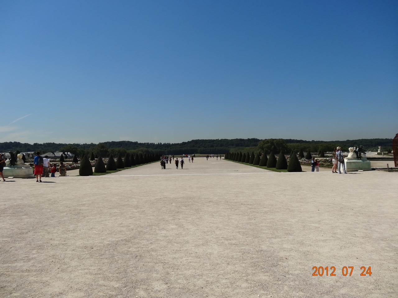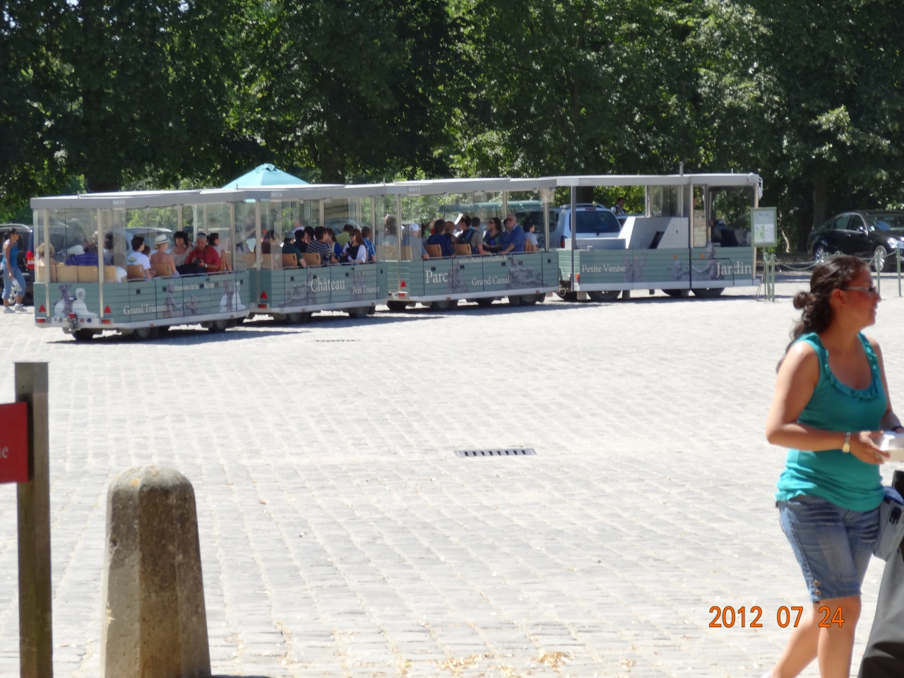 宮殿の中を見た後は、広い庭園を見学しました(別料金です)。庭園は広大でとても歩いて廻るのは大変です。庭園には「プチトラン」という連結式のミニバスがあり、これに乗りました。ハイジーズンだけに、この「プチトラン」に乗車するにも、40分以上待ちました(それでも、乗って正解だと思います)。マリーアントワネットの離宮、トリアノンもすぐに行けました。グラントリアノンも、ベルサイユ宮殿のチケットを持っていても、別途別料金がかかります。グラン・トリアノンはバラ色(ピンク)の大理石でできており、とても上品で綺麗でした。