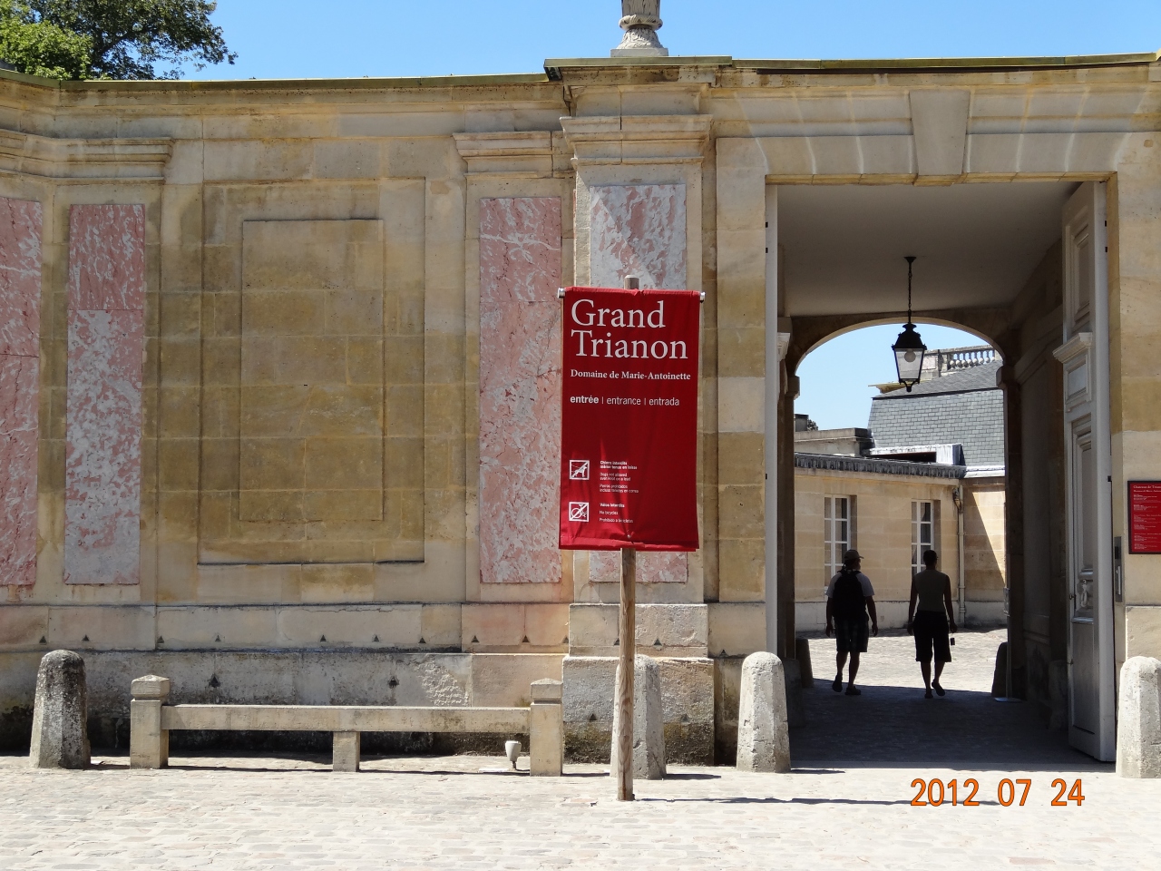 ベルサイユ宮殿の庭園の中にあります。宮殿から少し離れていますので、「プチトラン」という連結式のミニバスに乗って行きました。訪問した日は、7月のとても暑い日でしたので、「プチトラン」に乗って正解だと思います。「プチトラン」の最初のストップでおりると、そこがグラントリアノンです。
