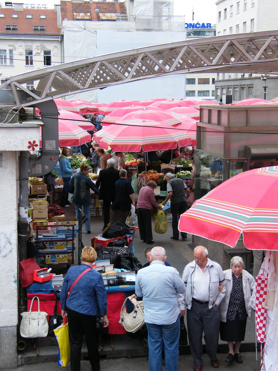 あいにく小雨の降る日でしたが、買い物の人で賑わっていました。まず目に付いたのが、鮮やかな色の鉢植えの花でした。広いスペースで売られていて、ヨーロッパらしいと感じました。路地に入ると食べものや日用品など見ているだけで楽しいです。観光地に近いので観光の前に寄るのにも便利な場所です。