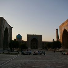 ウズベクメドレセ・シェルドルメドレセ・ティラカリメドレセを見渡すことができる公園風広場です。とりあえずココにいれば面白い地元の人や旅行者に会うことができます。特にアジア人は珍しいのかよく話しかけられました。