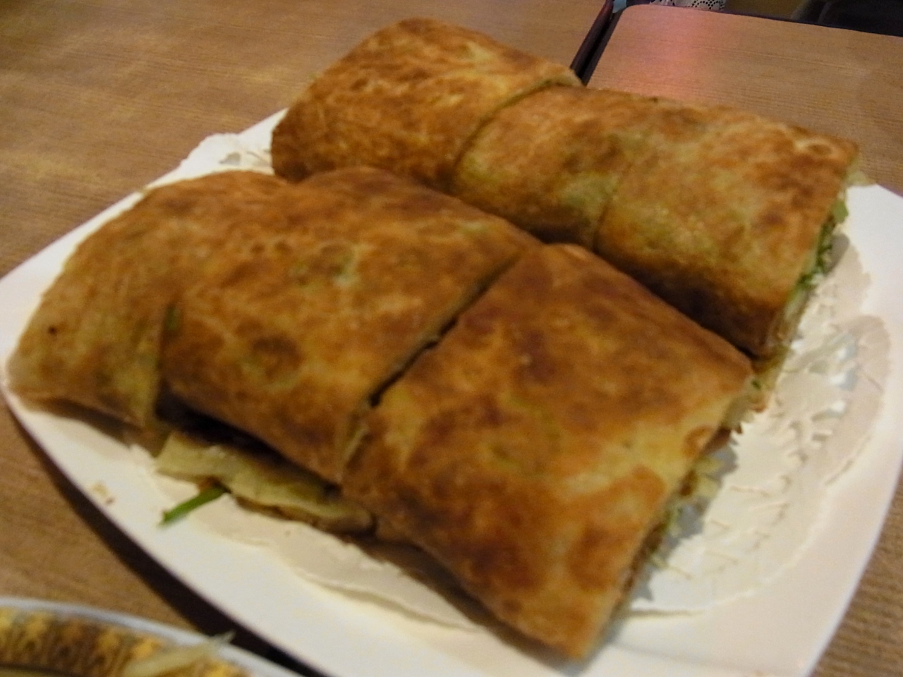 友人はシラスのチャ-ハンがとても気に入りました。私は猪肉大餅捲(90元)が