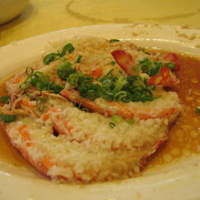 1Fの水槽で、好みのシーフードを選び、メニューにある調理方法を