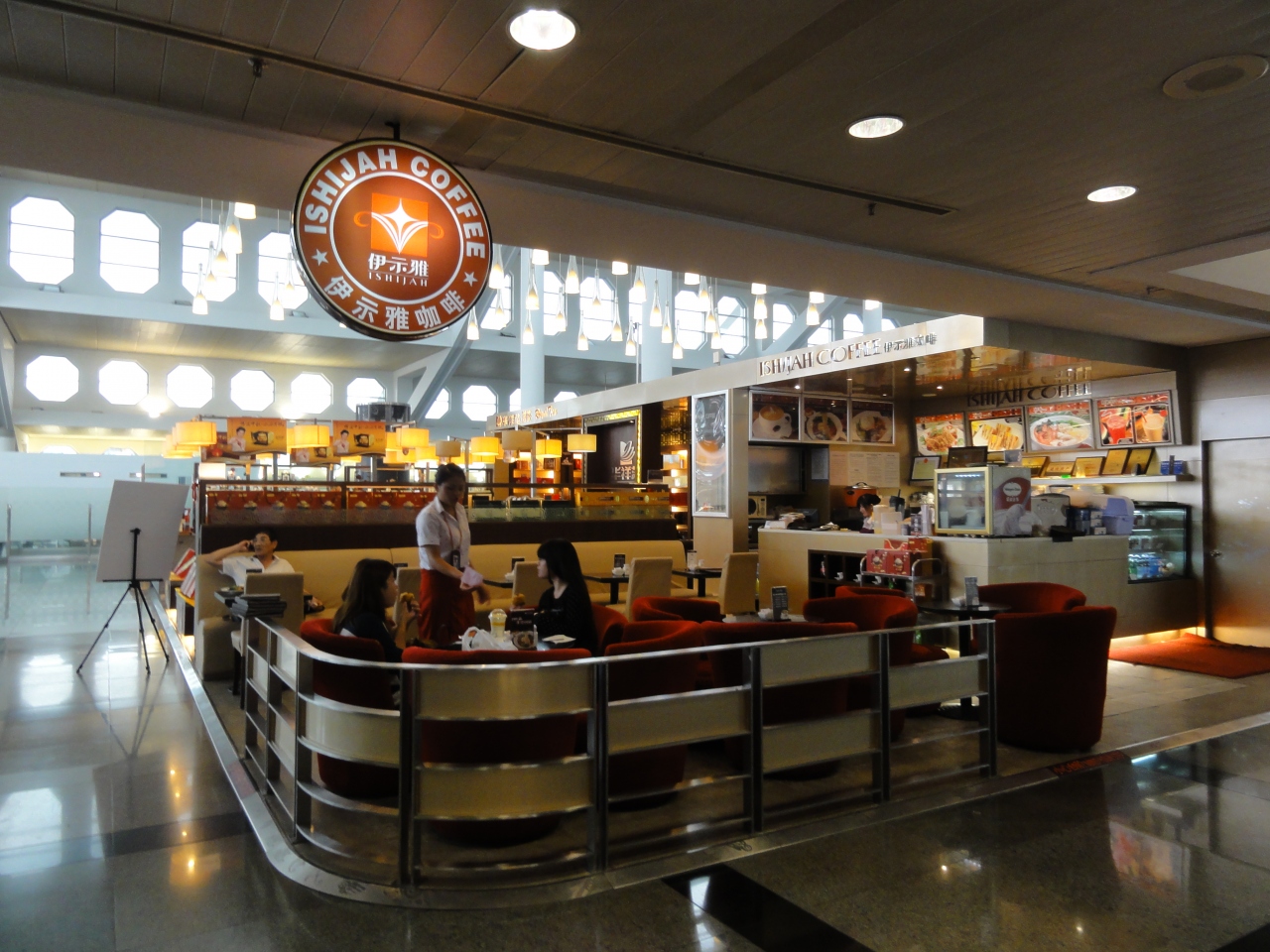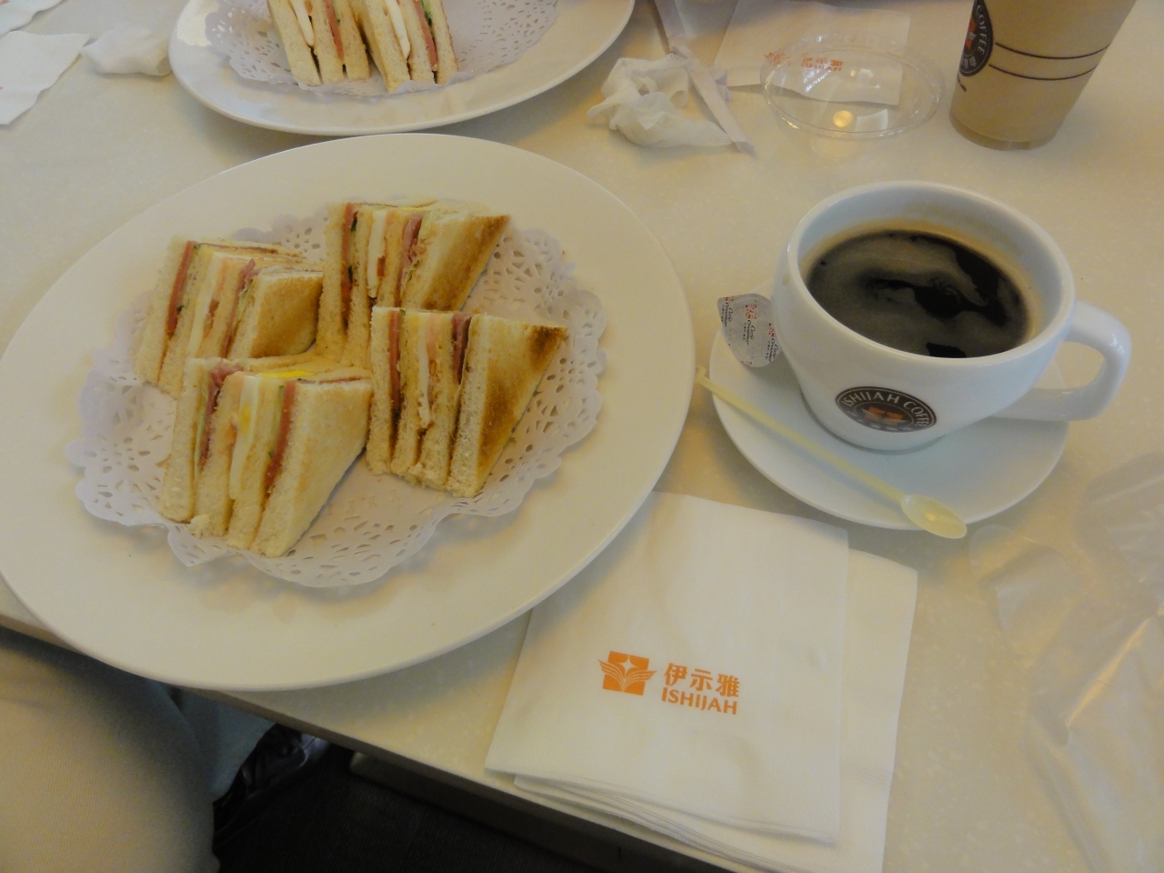 チェックイン後、全日空の横にも食事出来そうなところありましたがすぐ出国し、持ってた元の消費も兼ねて「伊示雅珈琲」で軽食をとりました。コーヒーやサンドイッチの他、お粥やパスタもありました。