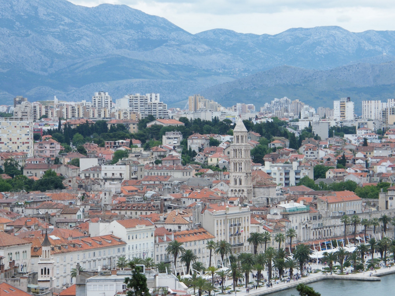 長距離バスターミナルから港沿いに西に25分から30分位で着きます。坂をずっと登っていくとクロアチア考古記念碑博物館に行き着きますが、この辺りからは景色が見えず、途中の曲がり角からの景色が素晴らしいです。展望台にもなっています。