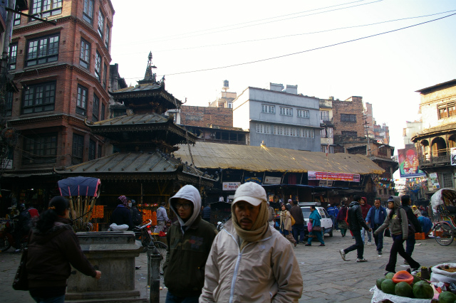 広場というか道が少し広くなった所という感じです。周囲はぶっ壊れそうな建物があり、人通りが多く、道端で物を売っている人がいて、まさに混沌としていました。ごちゃごちゃしているのでカトマンズっぽい雰囲気を楽しめる場所だと思います。