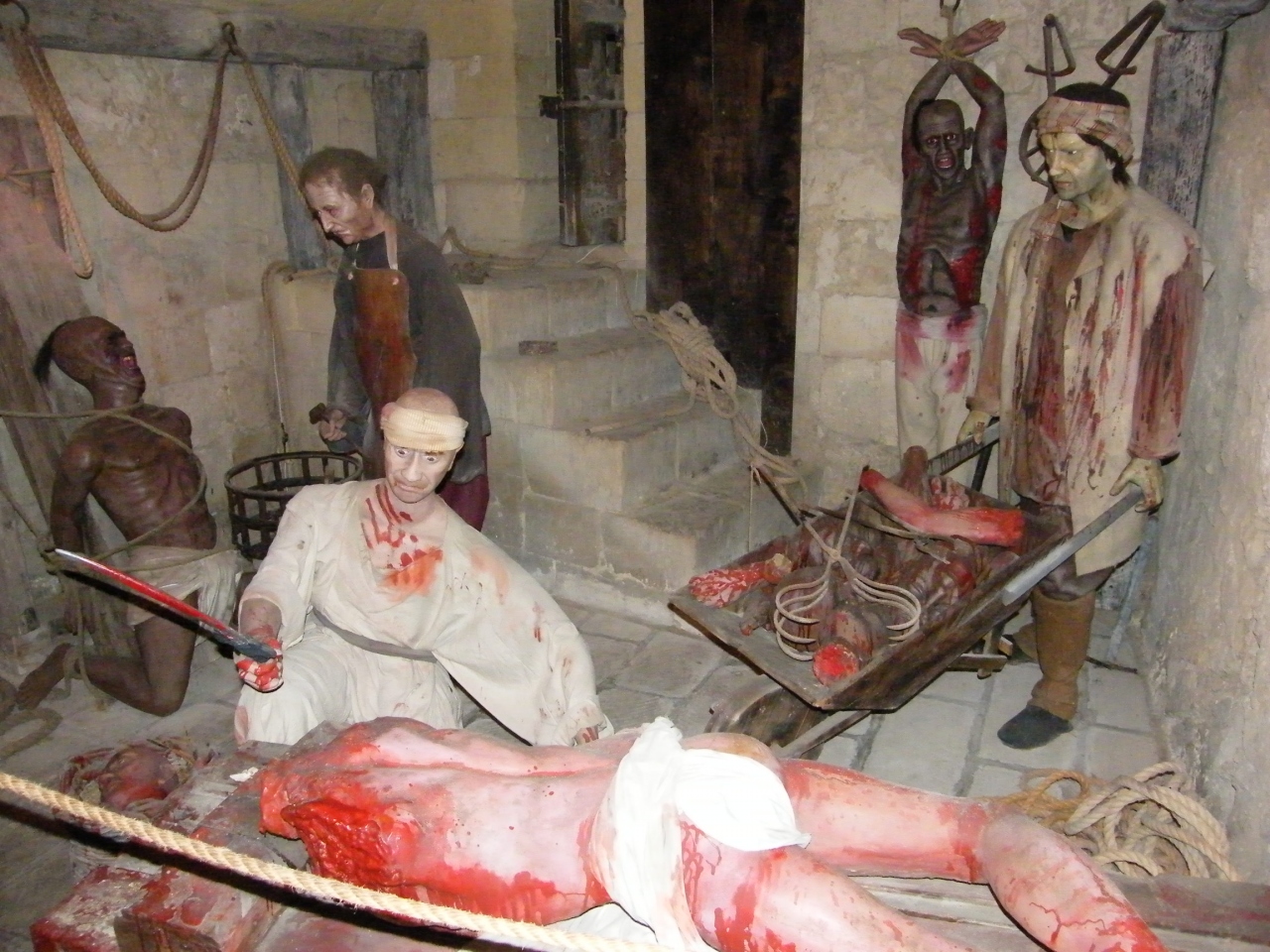 かつて行われていた拷問用の器具などが、蝋人形とともに展示されています。