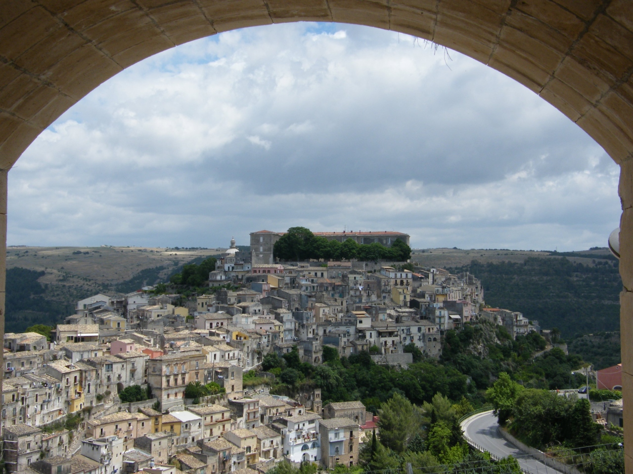 ラグーザの鉄道駅から20分ほど新市街を歩くと、丘の下に広がる旧市街「イブラ地区」が目の前に広がります。