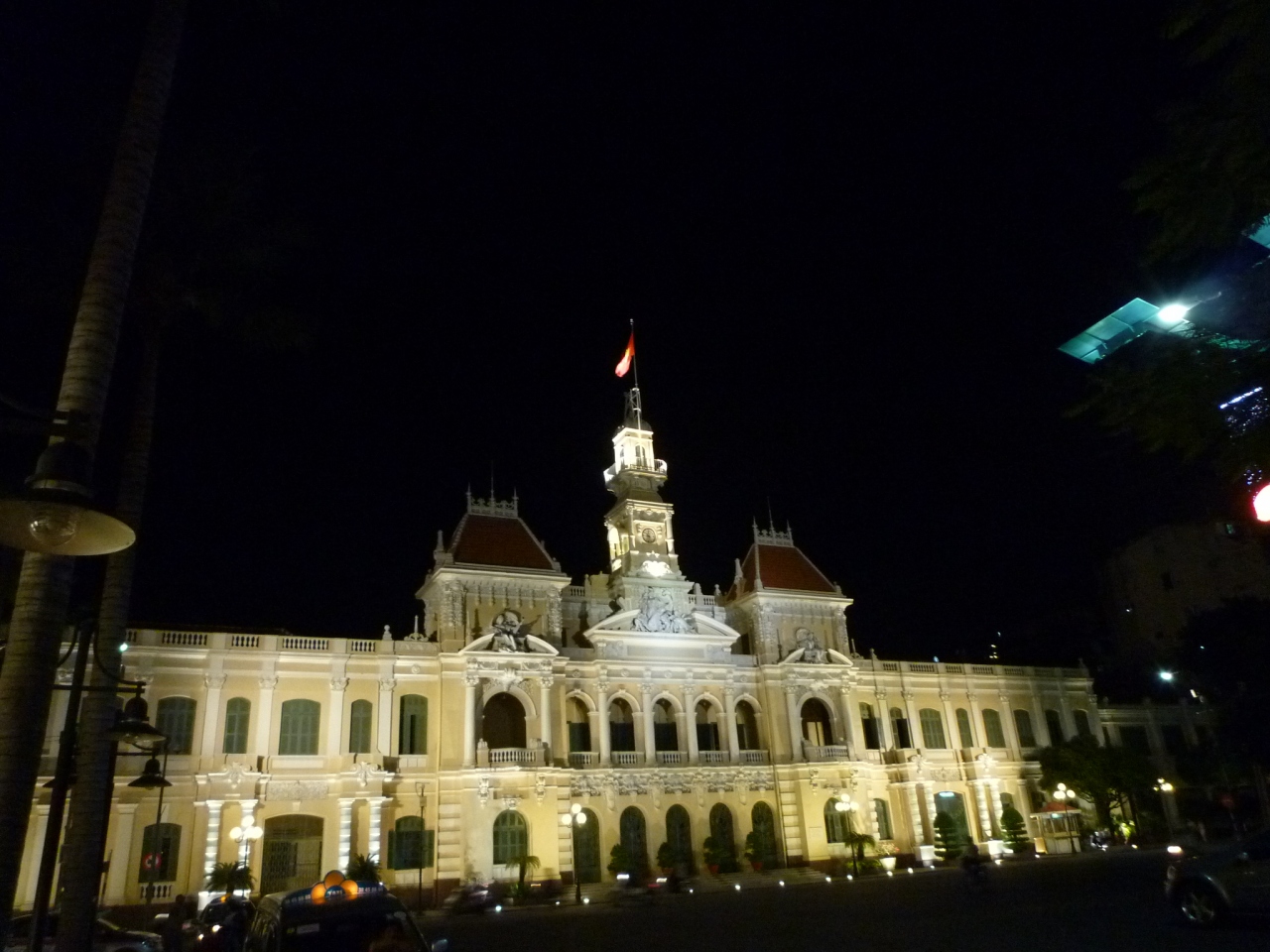 大変存在感のある建物です。サイゴンに住むフランス人のパブリックホールとして建設されたそうですが、現在はホーチミン市人民委員会庁舎として使われています。そのため内部の見学はできませんが、夜のライトアップされた姿は圧倒感があります。