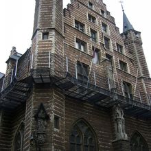 肉屋のギルドハウスは、現在は、楽器博物館になっている。むかしはここで肉の売買が行われていたところ。煉瓦造りで重厚な感じに見える。1503年ゴシック様式の建物。中は当時の家具調度品や楽器のコレクションが展示されている。
