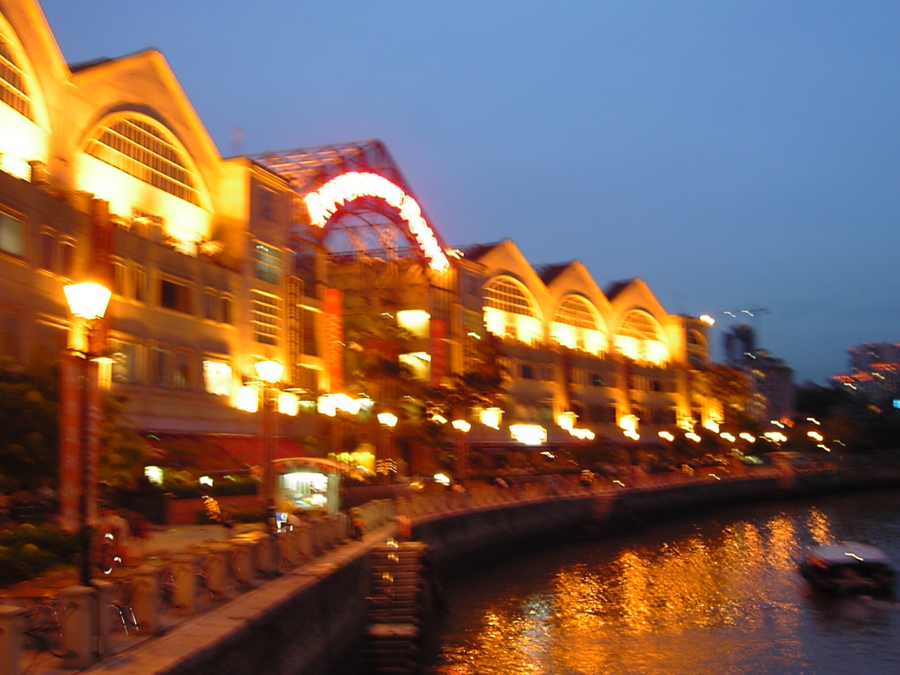 川辺に、レストランや商店が立ち並ぶおしゃれなエリア。夜になると美しくライトアップされるので行くなら絶対に夜がおすすめ。レストランの中には川沿いの外席を設けている店もある。川沿いで食べる夕食の雰囲気は何とも言えない。トイレの男女表示がお洒落で面白かった。