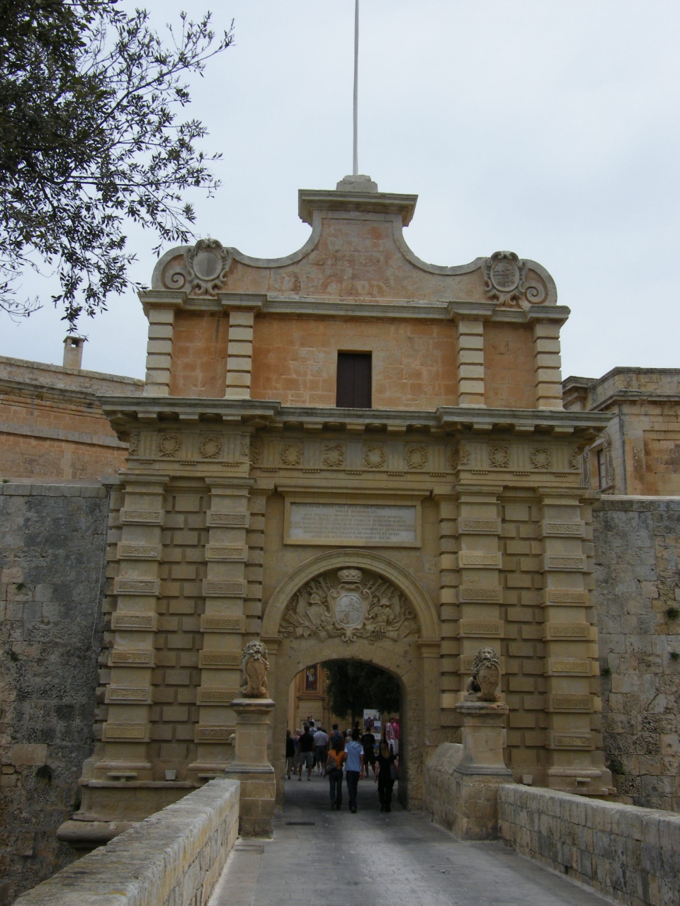ヴァレッタからバスで20分ぐらいでバスターミナルに着く。そこから公園を通ってイムディーナの街へ入る玄関口にこのゲートがあります。このメインゲートでは選出されたばかりの騎士団長を迎え入れ、街の鍵を授与したと言われています。